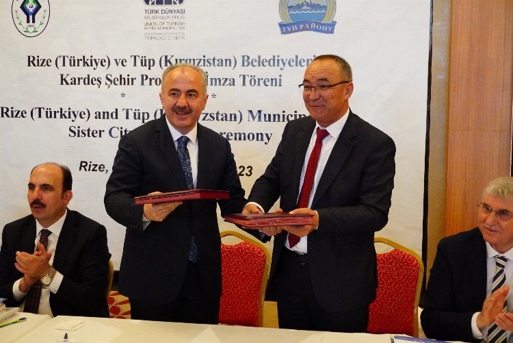 RİZE (İGFA) - Türk Dünyası Belediyeler Birliği'nin organizesinde Türkiye Cumhuriyeti Cumhurbaşkanı Recep Tayyip Erdoğan’ın memleketi Rize ile Kırgızistan Cumhurbaşkanı Sadır Caparov’un memleketi Tüp Belediyesi arasında imzalanan protokolle birlikte Cumhurbaşkanlarının memleketleri kardeş şehir oldu.