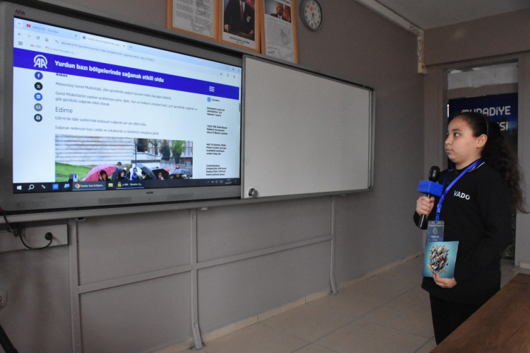 Van'ın Tuşba ilçesinde Vali Adnan Darendeliler Ortaokulunda kurulan Medya Okuryazarlığı Kulübü sayesinde öğrenciler, gazeteciliğin inceliklerini öğreniyor.
