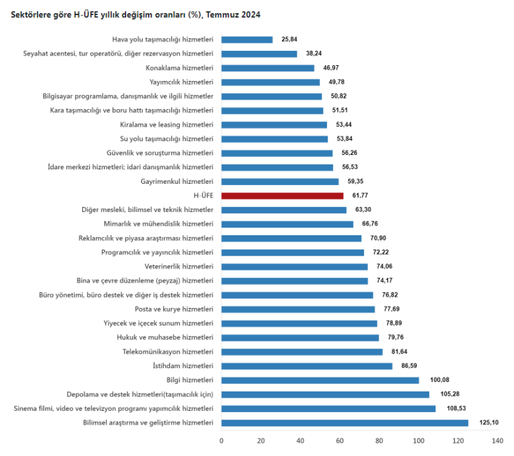 Hizmet Üretici Fiyat Endeksi'nde Temmuz ayı verilerine göre bilimsel ve teknik hizmetlerde yüzde 77,10 artış gözlendi.