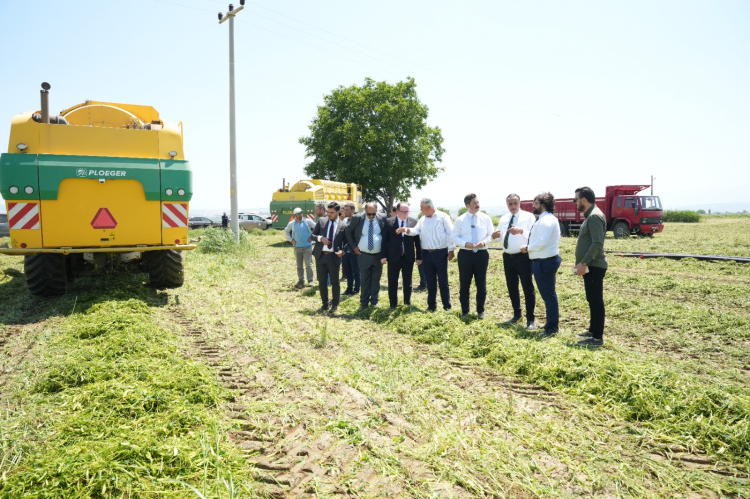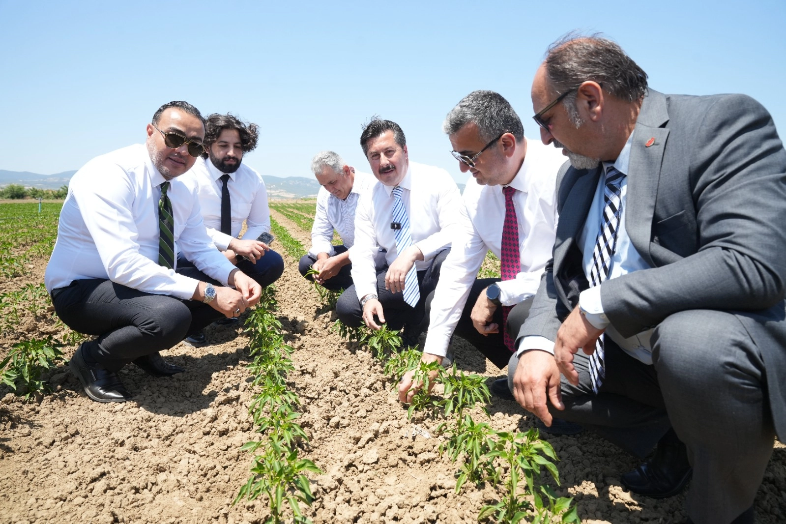 Heyete Yenişehir’in verimli topraklarını gezdiren Özel, bezelye hasadını yerinde göstererek Coğrafi İşaret Belgeli Yenişehir Biberi’nin ekim sürecini tanıttı. Yolören Tarımsal Kalkınma Kooperatifi’ni ziyaret eden heyet, ürünlerin üretim ve paketleme süreçlerini inceleyerek hayranlıklarını dile getirdi.