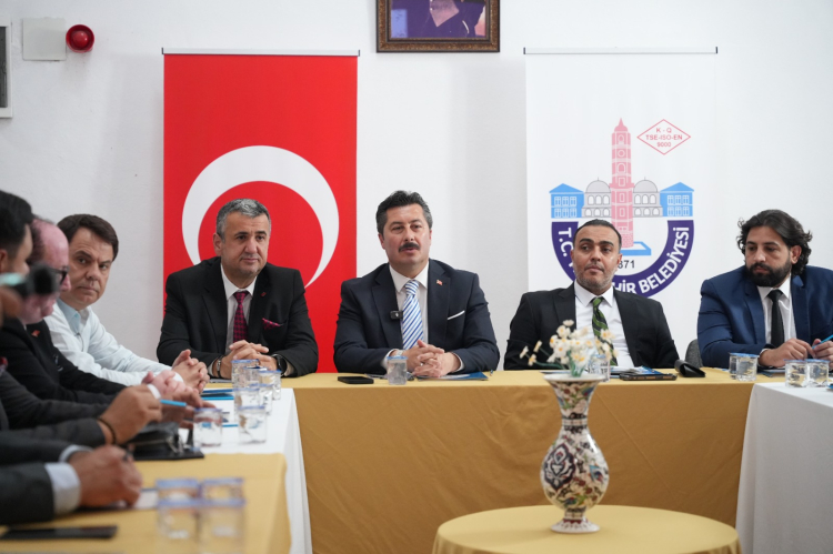 BURSA (İGFA) - Yenişehir Belediye Başkanı Ercan Özel, Libya Ticaret, Sanayi ve Tarım Odaları Genel Birliği Fuarlar İdaresi Başkanı İsam Abu Abdullah Aloul, ANASİAD Başkanı Hakan Birkan ve beraberindeki heyeti ilçede ağırladı. Yenişehir Belediyesi Tarihi Bina’da gerçekleşen buluşmada, ilçenin tarım ürünleri Afrika pazarına tanıtıldı.