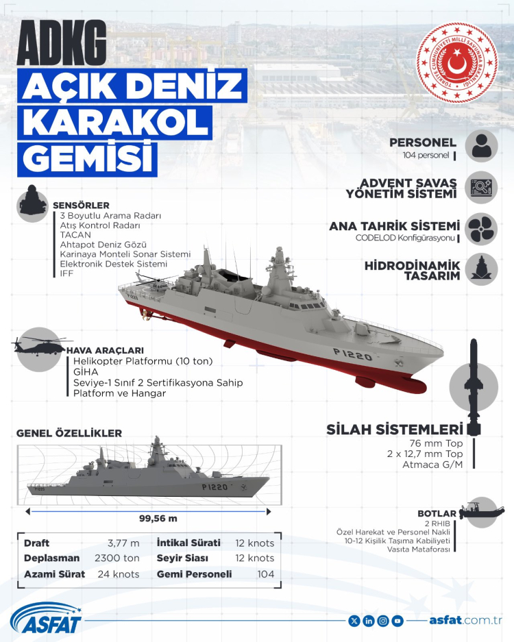 Yüksek güvenilirliğe ve caydırıcılığa, düşük radar kesit alanı ve düşük sualtı akustik izi ile yüksek beka kabiliyetine sahip, maliyet etkin, üstün sensör ve silah sistemleri ile donatılmış, yerli ve milli yeni nesil açık deniz karakol gemisi Türk savunma sanayisi açısından ilkleri barındırıyor.