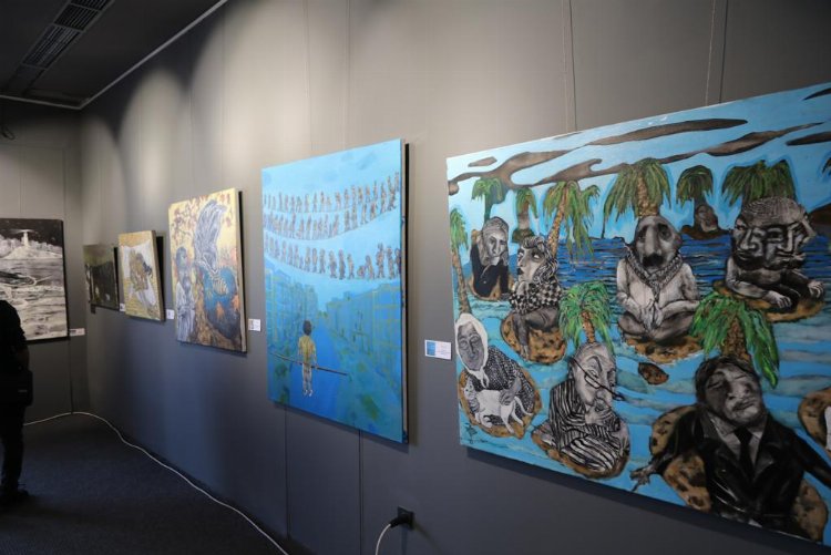 Açılış konuşmalarının ardından sanatseverler, 4 sanatçının 40 eserinden oluşan sergideki eserleri inceleyerek eserler hakkında bilgiler aldı.