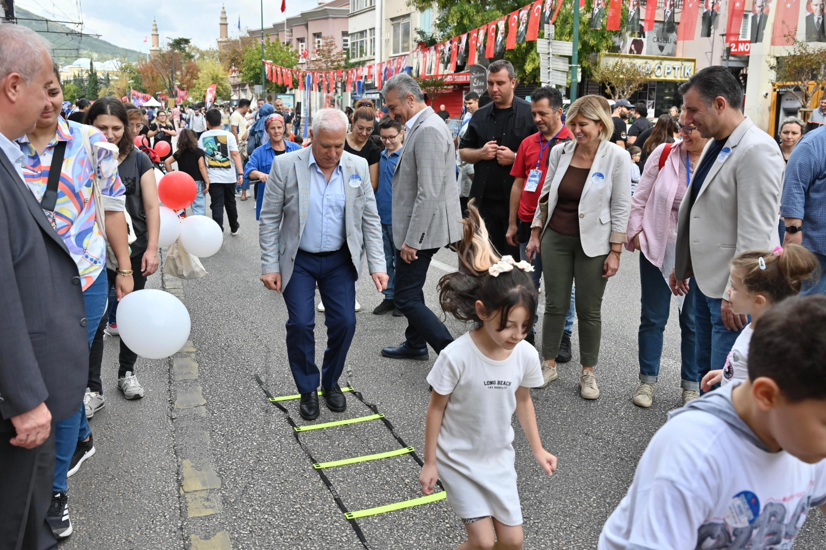 Bursa’da, Avrupa Hareketlilik Haftası etkinlikleri kapsamında araç trafiğine kapatılan Heykel Atatürk Caddesi, çocuk sesleriyle şenlendi.