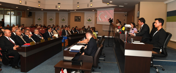 BURSA (İGFA) - Bursa'da Osmangazi Belediye Meclisi Temmuz Ayı Olağan Toplantısı, Belediye Başkanı Erkan Aydın yönetiminde gerçekleşti. Toplantı, Pençe-Kilit Harekâtı’nda metan gazından şehit olan 12 asker, orman yangınları, Leman Dergisi karikatürü ve CHP’li belediye başkanlarına yönelik soruşturmalarla başladı. Saygı duruşu ve İstiklal Marşı ile açılan toplantıda, CHP, AK Parti ve MHP sözcüleri görüşlerini sundu.