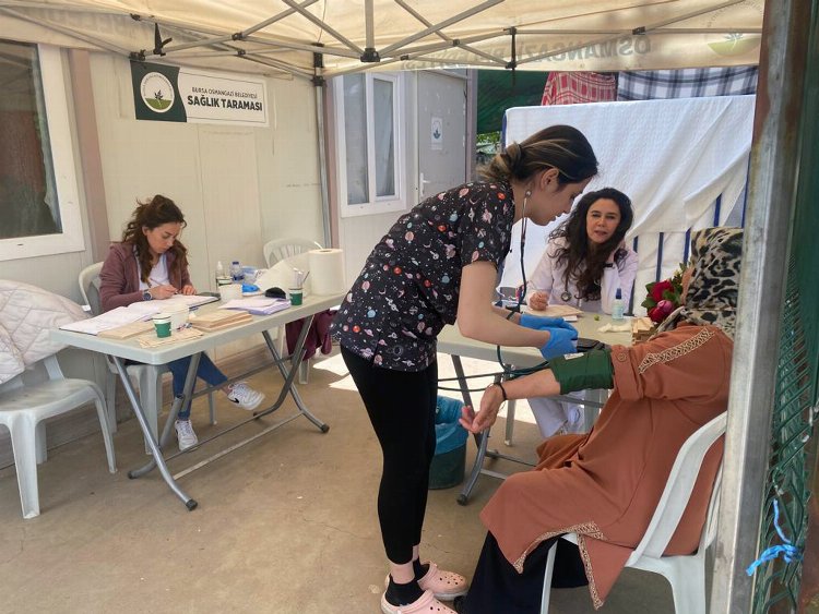 Türkiye’yi derinden sarsan deprem felaketinin yaralarını sarmak için seferber olan kurumlardan biri olan Osmangazi Belediyesi, deprem bölgesine prefabrik konut inşaatı, aşevi ve ilaçlama temizlik hizmetlerinin yanı sıra sağlık taramasına da başladı.