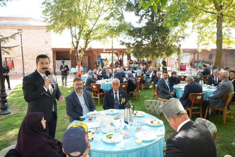 Ellerinde Türk bayraklarıyla Sinanpaşa Külliyesi’ne kadar yürüyen gaziler, burada Yenişehir Belediye Başkanı Ercan Özel’in ev sahipliğinde düzenlenen kahvaltı programına katıldı.
