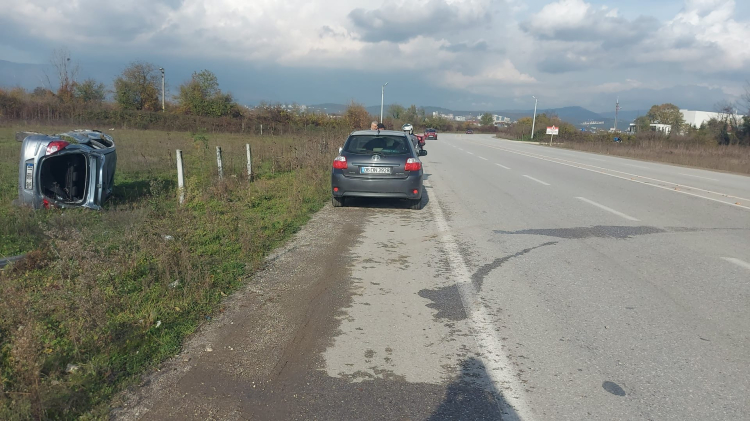 Sefer DEMİR / DÜZCE (İGFA) - Düzce’de yeni açılan çevre yolunda seyreden Selçuk K. yönetimindeki 81 ADD 304 plakalı otomobil, Çamköy yakınlarında kontrolden çıkarak yol kenarındaki boş araziye devrildi.