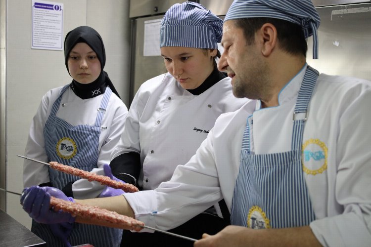 KOCAELİ (İGFA) - Kocaeli Büyükşehir Belediyesi iştiraklerinden Antikkapı A.Ş. bünyesindeki Antik Akademi, periyodik olarak mesleki liselerin aşçı adayı öğrencileriyle bir araya gelmeye devam ediyor. 2023 yılının ilk eğitimini Maide Kafe’de düzenleyen Antikkapı şefleri, katılımcı öğrencilere aşçılıkla alakalı tecrübelerini aktardı ve en güzel kebabın nasıl yapılacağının püf noktalarını anlattı. Eğitim sonunda usta şefler, geleceğin aşçı adayı öğrenciler ve öğretmenler, kendi elleriyle yaptıkları kebapları yedi.