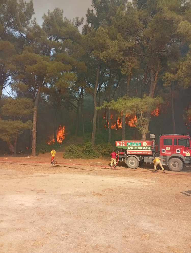 Yangının çevreye yayılmaması için İzmir Büyükşehir Belediyesi İtfaiye ekipleri 4 yüksek tonajlı araç, 4 arazöz, 18 personel ile müdahale ediyor. Orman Bölge Müdürlüğü de 30 arazöz, 3 dozer, 4 su tankeri, 5 helikopter, 4 uçak ile alevleri kontrol altına almak için yoğun çaba harcıyor. İzmir Büyükşehir Belediyesi Park ve Bahçeler Dairesi Başkanlığı, İZSU Genel Müdürlüğü ve ilçe belediyeleri tarafından gönderilen su tankerleri de söndürme çalışmalarına destek oluyor.