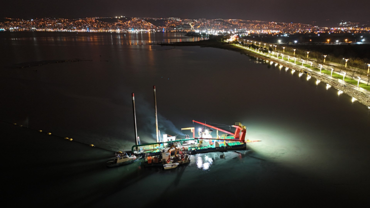 Kocaeli'nde İzmit Körfezi Dip Çamuru Temizleme Projesi 1. etap çalışmasında son geotekstil tüplerin serimi gerçekleşti.