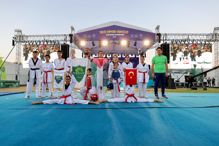 Meram Yaz Spor Okulları 2025 Kapanış Programı boyunca çocuklar ve aileler; oyun grupları, akıl zekâ oyunları ve spor gösterilerinin yanı sıra müzik dinletileriyle unutulmaz bir gün yaşadı. Çocuklar kendileri için hazırlanan özel stantlarda gönüllerince eğlenirken, Yaz Spor Okulları öğrencileri ve Meram Belediyespor Kulübü sporcularının hazırladığı gösteriler de büyük beğeni topladı. Sporcuların gösteriler sonunda Türk Bayrağı ile birlikte Filistin Bayrağını yan yana taşımaları Gazze’de yaşananlara dikkat çekmesi açısından programa katılanlar tarafından değerli görüldü. Kapanış törenine katılan protokol üyeleri de çocukların eğlencelerine ortak oldu.