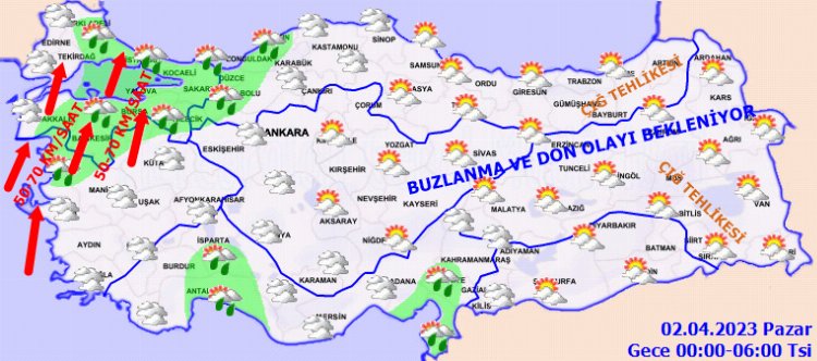 Meteoroloji, Marmara Bölgesi'nde beklenen lodos, fırtına nedeniyle önemli uyarılarda bulundu. Doğu kesimlerinde don olayı beklendiğinin de altı çizildi.