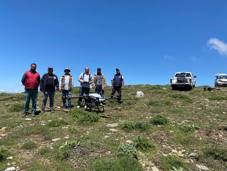 MANİSA (İGFA) - Manisa Büyükşehir Belediyesi Sağlık İşleri Dairesi Başkanlığı tarafından Salihli ilçesine bağlı Çelikli, Burhan, Başlıoğlu, Şirinyer, Çamurhamamı, Karaağaç gibi yaylalardaki meralarda çekirge yumurta bırakma alanları (garsiyat) bulunması sebebiyle drone ile ilaçlama çalışması gerçekleştirildi.