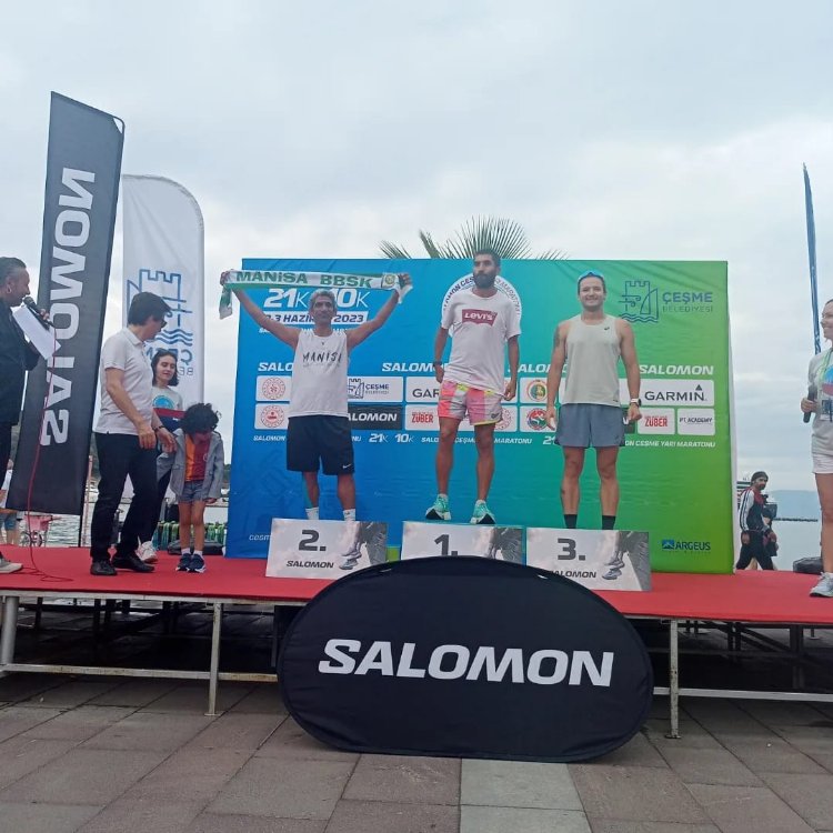 Manisa Büyükşehir Belediyespor’un başarılı atletleri Ahmet Bayram ve Özlem Işık, Salomon Çeşme Yarı Maratonu’nda yine zirvede yer aldılar. 12 ülkeden 1103 koşucu ile gerçekleşen yarışta Ahmet Bayram genel klasmanda ikinci sırada yer alırken, Özlem Işık kadınlarda üçüncü oldu.