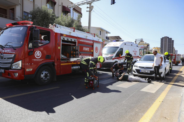 MERSİN (İGFA) - “Bir Kural, Bir Ömür” sloganıyla düzenlenen tatbikatta, iki aracın çarpışması ve bir yayaya çarpılması senaryosu gerçeğe yakın bir biçimde canlandırıldı. 112 Acil ekipleri ile Mersin Büyükşehir Belediyesi Ulaşım ve Trafik ekipleri olay yerine hızla intikal ederek profesyonel müdahalede bulundu.
