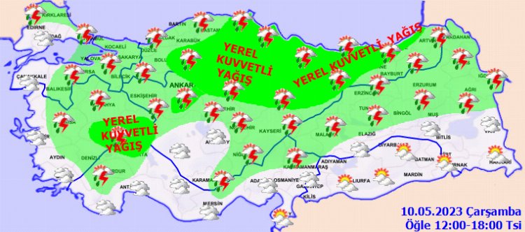 Ülkemiz genelinin parçalı ve çok bulutlu, Marmara’nın doğusu, İç Ege, Batı Akdeniz'in iç kesimleri, İç Anadolu’nun kuzey ve doğusu, Karadeniz, Doğu Anadolu’nun kuzey ve batısı sağanak ve gök gürültülü sağanak yağışlı geçeceği tahmin ediliyor.