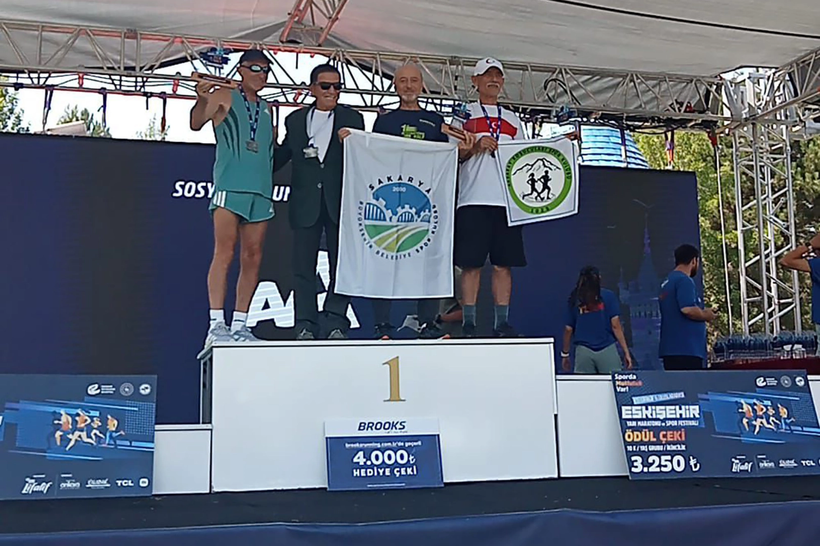 SAKARYA (İGFA) - Sakarya Büyükşehir Belediyesi sporcuları katıldıkları yarışmalarda başarılara imza atmaya devam ediyor. 2-3 Ağustos tarihlerinde Eskişehir’de gerçekleştirilen 6. Uluslararası Eti Lifalif Yarı Maratonu’na katılan Büyükşehirli sporcu Ali Turan, 65-69 yaş grubunda zorlu parkuru başarıyla tamamlayarak kürsünün zirvesine çıktı.