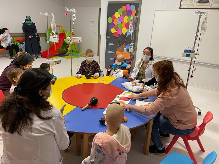 Sakarya Büyükşehir Belediyesi Sosyal Gelişim Merkezinde (SGM) görev alan öğretmenler, Eğitim ve Araştırma Hastanesi Onkoloji bölümünde tedavi gören çocukları doyasıya eğlendirdi.