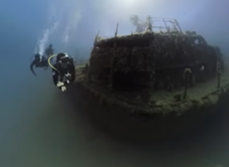 Saros'ta yapay resif projesi kapsamında batırılan gemi, dalgıçlar tarafından görüntülendi.
