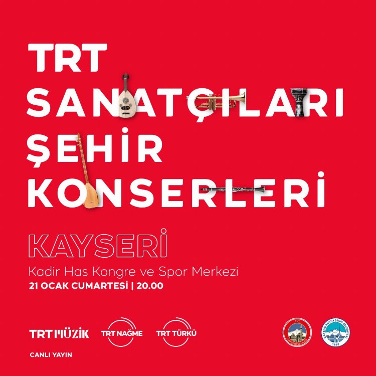 Bu kapsamda Büyükşehir ve Valilik iş birliğinde TRT Sanatçıları Şehir Konserleri düzenlenecek. 21 Ocak Cumartesi günü saat 20.00’de Kadir Has Kongre ve Spor Merkezi’nde düzenlenecek konserde sahne alacak TRT sanatçıları sevilen parçaları Kayserililer için seslendirecek.