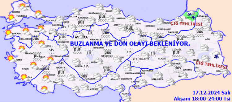 Yağışların kıyılarda yağmur, iç kesimlerde karla karışık yağmur ve kar şeklinde olması beklenmektedir. Doğu Karadeniz’in iç kesimlerinin yüksekleri ile Doğu Anadolu’nun doğusunun dik ve eğimli yamaçlarında çığ tehlikesi bulunmaktadır. Ülkemizin iç ve doğu kesimlerinde buzlanma ve don ile birlikte pus ve yer yer sis bekleniyor. Rüzgarın, Orta Karadeniz kıyılarında batılı yönlerden kuvvetli (40-60 km/sa) olacağı tahmin ediliyor.