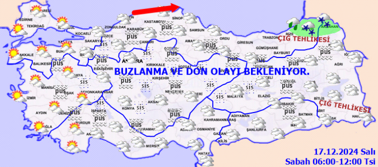 ANKARA (İGFA) - Meteoroloji Genel Müdürlüğü, 17 Aralık Salı gününe ilişkin günlük hava tahmin raporunu yayımladı.