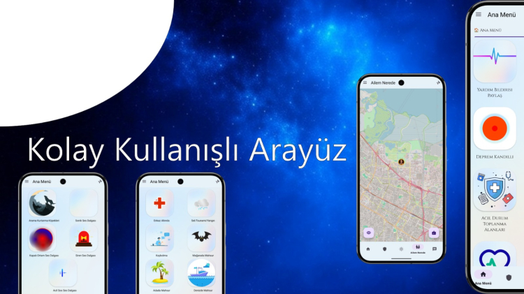 Uygulama, aile konum takibi, tek tuşla acil yardım çağrısı, sesli enkaz tespiti, kayıp ilanı, aranan suçlular hakkında bilgi ve 4 günlük hava durumu tahmini gibi özelliklerle dikkat çekiyor.