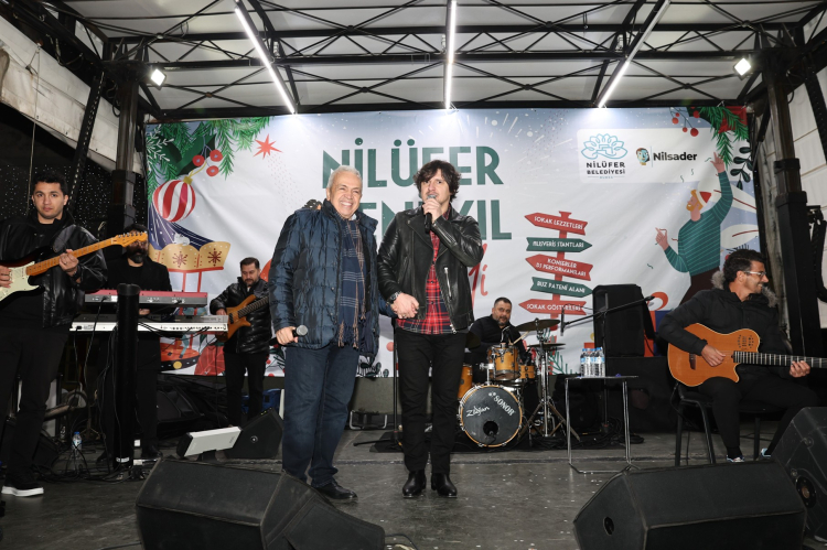 “Nilüfer Yeni Yıl Festivali” kapsamında Bursa’nın sevilen sanatçılarından Cengiz Ateş de 14 Aralık Cumartesi gecesi sahne aldı. Popüler şarkıları seslendiren Ateş ile dinleyiciler eğlenceli bir akşam geçirdi. Cengiz Ateş, konser sonunda Başkan Şadi Özdemir’i de sahneye davet etti. İzmir Marşı’nı birlikte söyleyen Başkan Şadi Özdemir ve Cengiz Ateş’e alanda bulunan vatandaşlar da eşlik etti.
